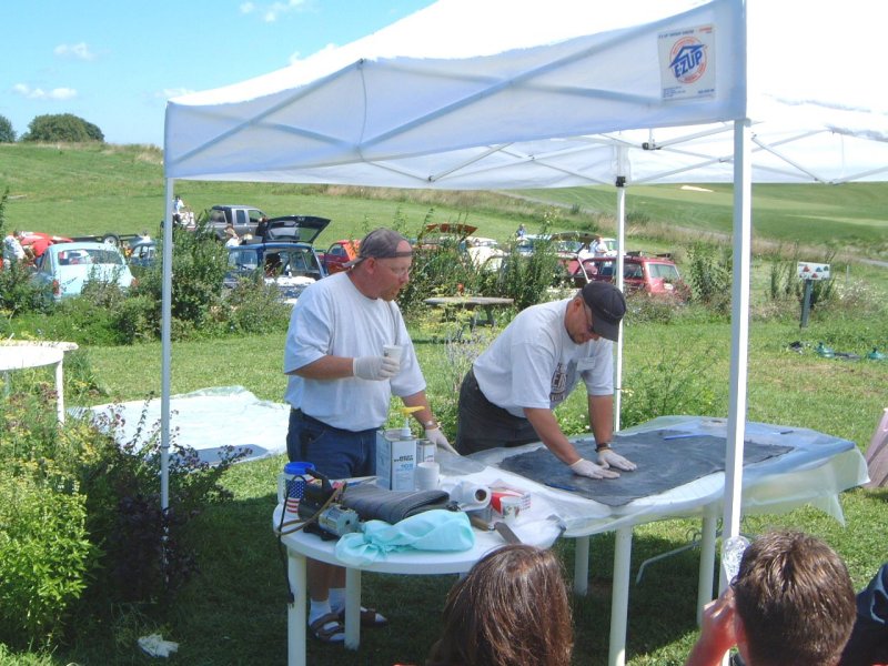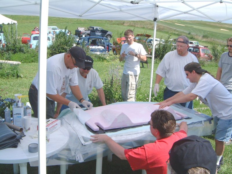 | Wetting out the top and bottom | Foam core in place | Placing the top sheet over |