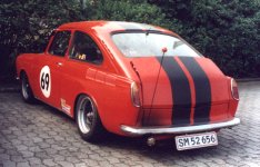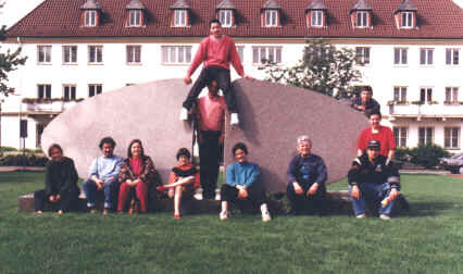 sculpture outside the Wolfsburg Council Building with the Type 3 & 4 Club members posing after an exhausting few days (1993) |